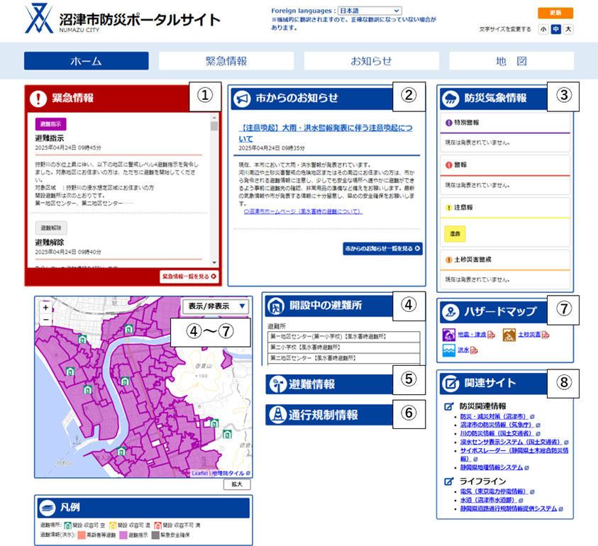 沼津市では、災害時の各種情報や通行規制情報などを確認できる防災専用のウェブサイト「沼津市防災ポータルサイト」を令和7年5月に開設しました。