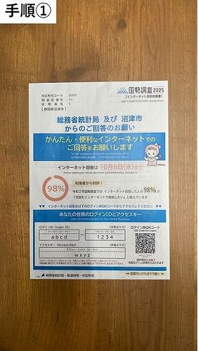 受け取った調査書類(封筒)の中から、「総務省統計局及び沼津市からのご回答のお願い」を用意する。