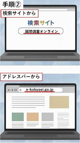 検索サイトから「国勢調査オンライン」を検索、またはアドレスバーに「e-kokusei.go.jp」を直接入力して…