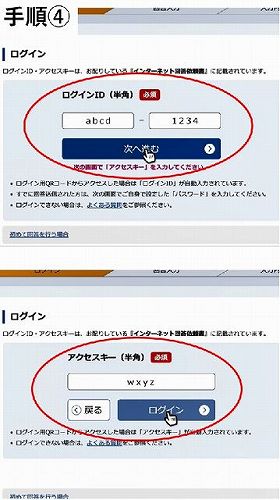 ログインIDとアクセスキーは自動で入力されるので、「次に進む」をタップし…