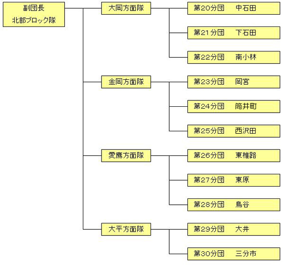 分団は大岡・金岡・愛鷹・大平の4方面隊11分団で組織され、沼津市の北部を災害から守っています。