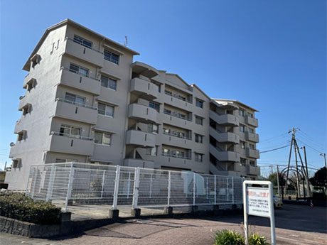 令和7年度実施の「沼津市営住宅中尾団地J-1棟居住改善・給排水管改善・屋根外壁改修・受水槽設置等工事」では、外壁の塗装や落下防止改修、屋根の防水改修等を実施する際、静岡県景観形成アドバイザー制度を利用し、環境色彩デザイン・色彩計画の専門家である加藤幸枝氏((有)クリマ代表取締役)からご助言をいただき、周辺環境との連続性や調和に配慮した塗装を行いました。