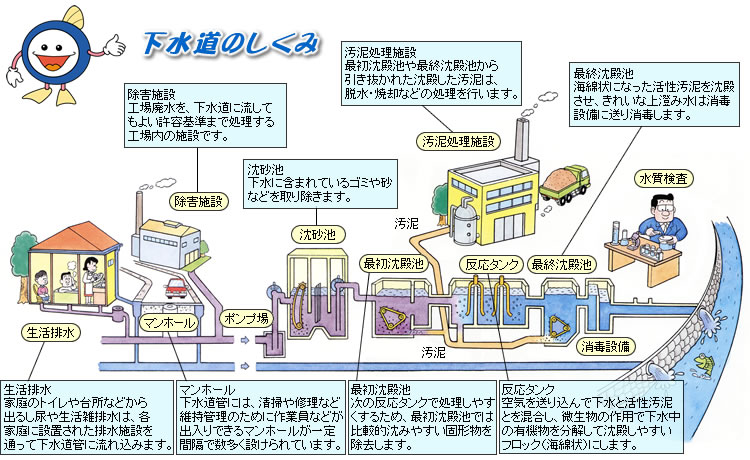 | 反応タンク | 微生物のはたらきにより汚れを取り除くところ |
