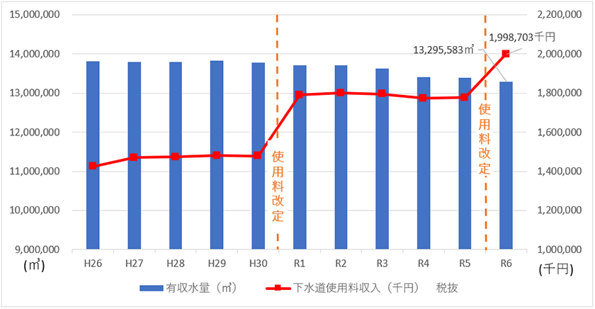 (※下水道使用料は、令和元年度及び令和6年度に改定を行っています。)
