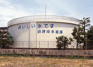 沼津の水道における拠点的施設で、深井戸などから取水した水を滅菌して配水池や直接家庭に圧送しています。泉水源地では、この写真の深井戸(7本)と湧水池から平成21年度は日量最大88,420立方メートルの水を取水しています。水温は約15℃で年間を通じて一定しています。水質がよいため、わずかの塩素滅菌をするだけでよく、原水としては最適なものといえます。