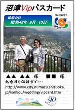 市民課では、ご夫婦の写真と結婚の日を記したパスカード「沼津Vipパスカード」をお作りしてプレゼントします。
