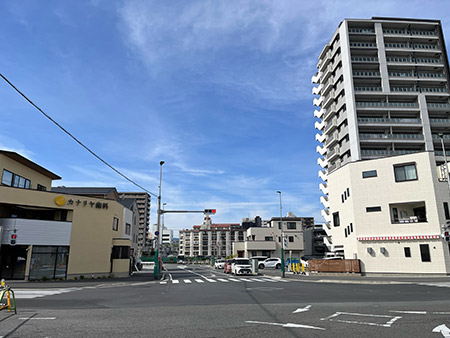 今後は、従前の道路の部分と合せて4車線の道路になり、電線類の地中化により、景観にも配慮された街並みになります。事業の進展に合わせ、周辺にはマンションや専門学校が建てられました。