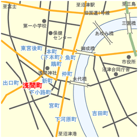 下本町南側を西に折れた通りが浅間町で、この地にある浅間神社に由来して付けられた町名です。